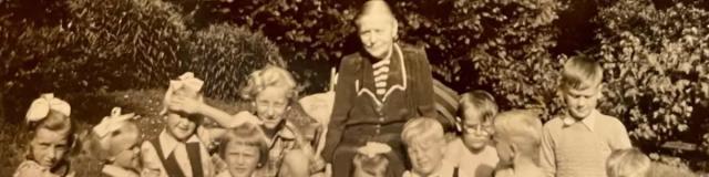 Her er min bedstemor på min fars side, Petrine Hedegaard, sammen med nogle af sine børnebørn. Fra venstre: Ingrid (Ingse), Ellen, Grethe, Bodil (foran), Karen(bagved), Sonja (foran bedstemor), Svend Åge, Lars, Frederik, Knud og Egon. Billedet er fra haven hos familien Grønfeldt i Vejle. Billedet er (måske) fra sommeren 1954. Der er lidt uenighed blandt mine kusiner om enkelte, f.eks. kan Dagny ikke forestille sig, at det er Svend Åge, for han havde aldrig butterfly på, men det er Bodil sikker på, at han havde den dag.)